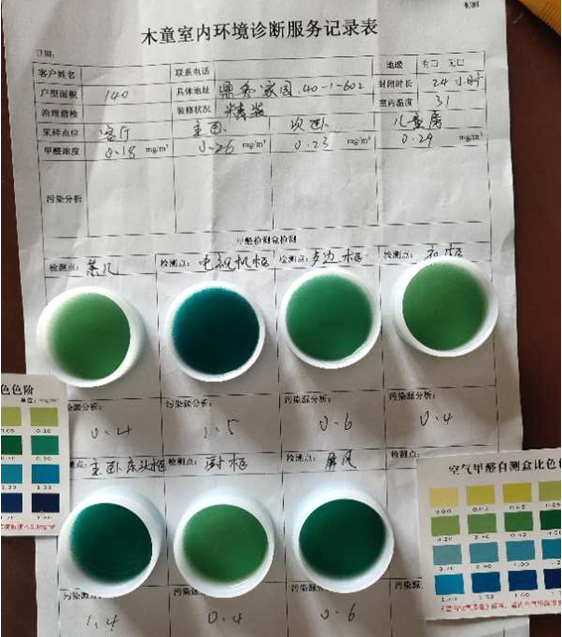 治理7天后,業(yè)主進(jìn)行自助檢測(cè)家具內(nèi)和CMA復(fù)檢驗(yàn)收,各項(xiàng)污染物均在國(guó)家標(biāo)準(zhǔn)以下。