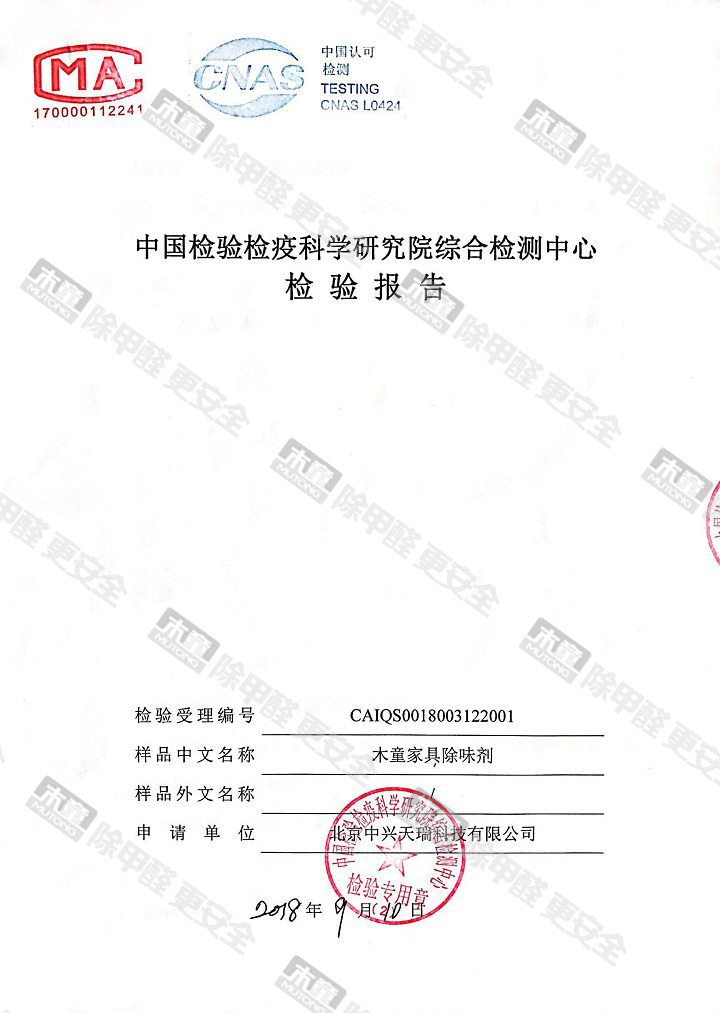 木童除醛2號三代安全性檢測報告